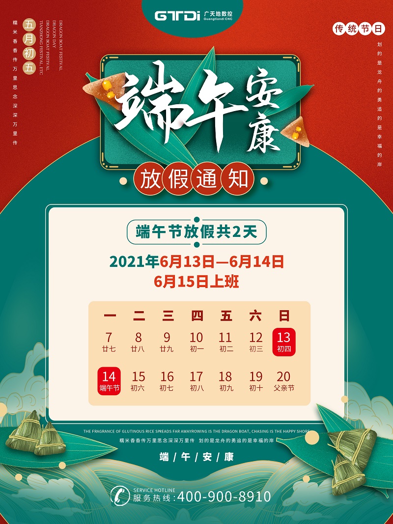 根据国务院办公厅《关于2021年部分节假日安排的通知》,并结合我司实际情况,多宝电竞|体育数控2021年端午节放假安排如下: