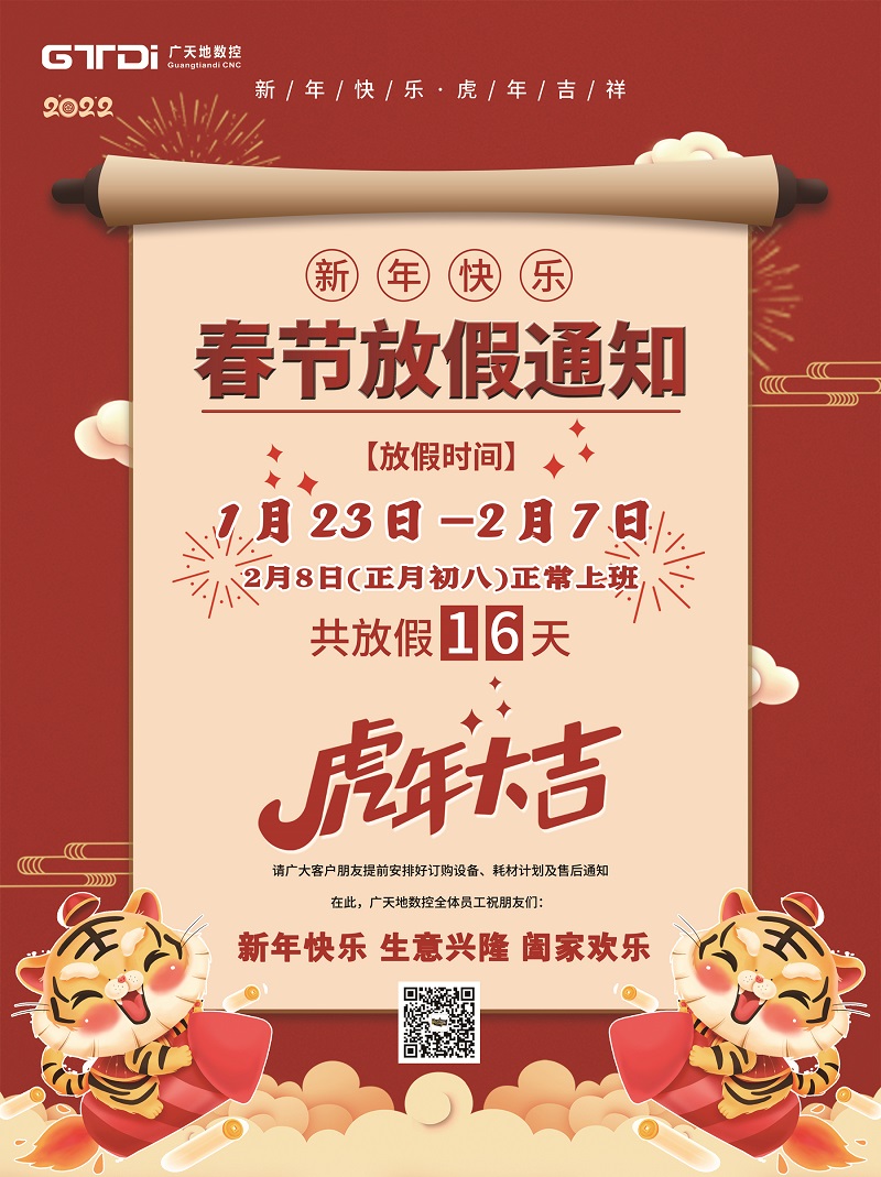 2022年春节将至,首先感谢您在2021年里的鼎力支持和愉快合作,多宝电竞|体育数控全体同仁在此给您拜个早年。在新年的一年里,多宝电竞将更加努力,为您提供更优质的服务。按照国家春节放假规定结合我司的具体情况,春节放假时间安排如下: