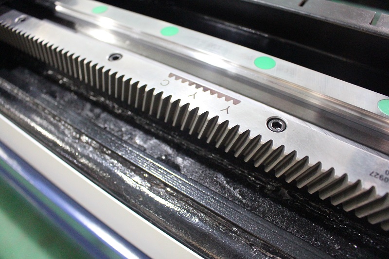 在光纤激光切割机应用中,齿条与圆柱齿轮配合,通常用于伺服电机进行动力传递,从而使光纤激光切割头可以在X、Y、Z方向运动,达到切割各种形状工件的目的。