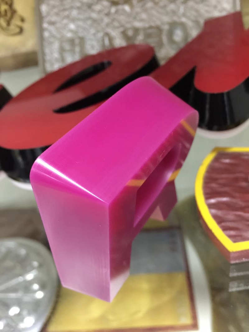 3、准备亚克力发光字边条,用雕刻机按?顺序(切割时板子不容易错位)切割出需要的边条规格。